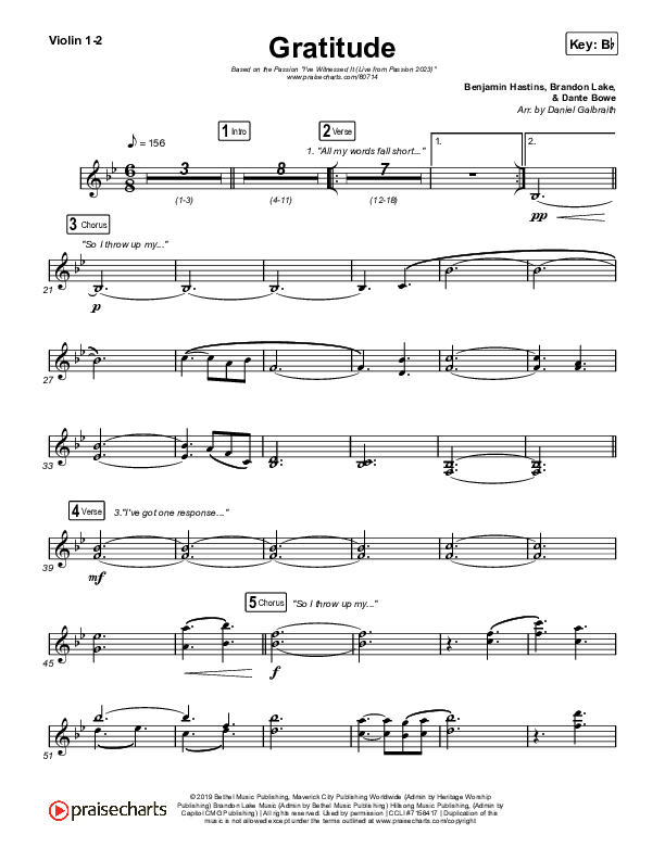 Download the Orchestration string parts for Gratitude (Live From Passion 2023) by Passion / Brandon Lake, from the album I've Witnessed It (Live from Passion 2023). This song was arranged by Daniel Galbraith in the key of A, Bb.