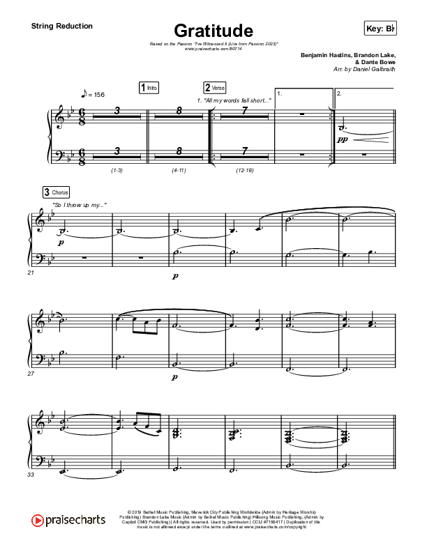 Download the String Reduction sheet music for Gratitude (Live From Passion 2023) by Passion / Brandon Lake, from the album I've Witnessed It (Live from Passion 2023). This song was arranged by Daniel Galbraith in the key of A, Bb.