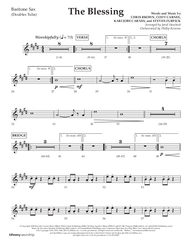 The Blessing (Choral Anthem SATB) Bari Sax Sheet Music PDF (Lifeway Choral / Arr. Jared Haschek)