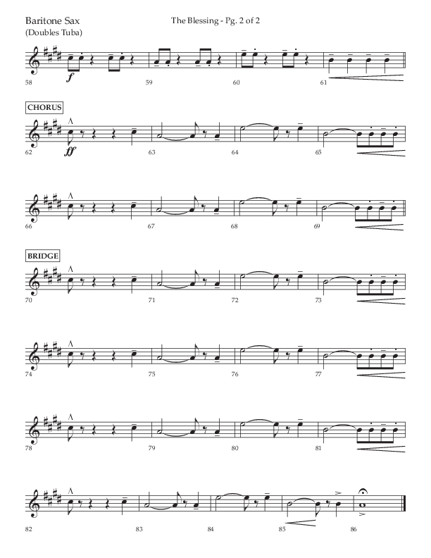 Download the Bari Sax sheet music for The Blessing (Choral Anthem SATB) by Lifeway Choral / Arr. Jared Haschek, from the album Non-Seasonal Choral Anthems. This song was arranged by Jared Haschek in the key of G.