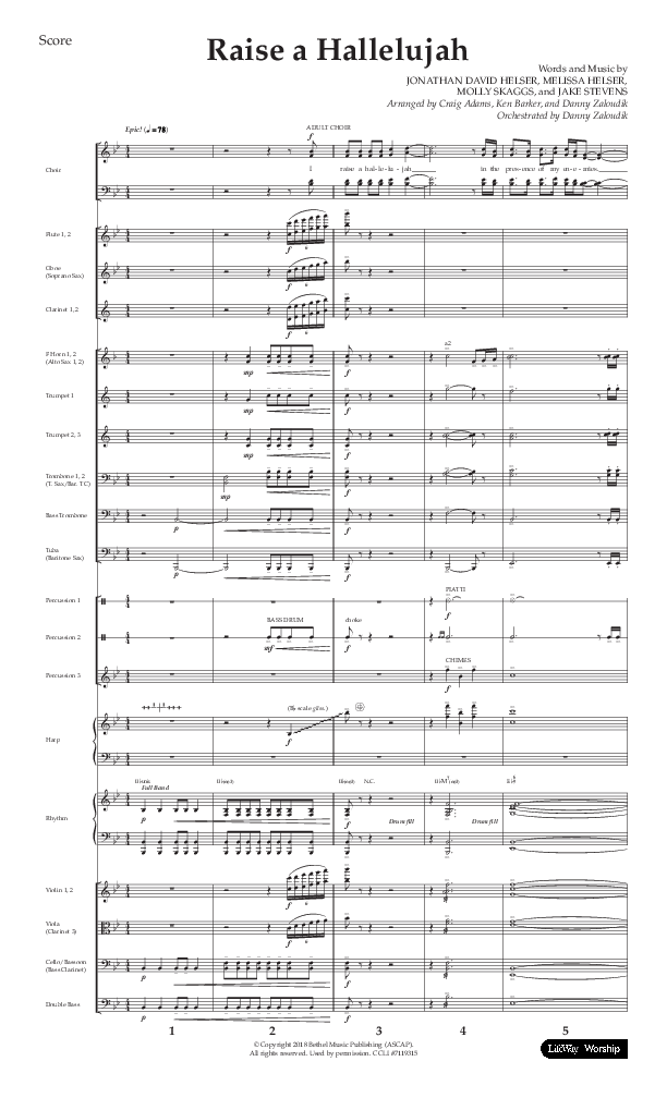 Raise A Hallelujah (Choral Anthem SATB) Orchestration (Lifeway Choral / Arr. Craig Adams / Arr. Ken Barker / Arr. Danny Zaloudik)