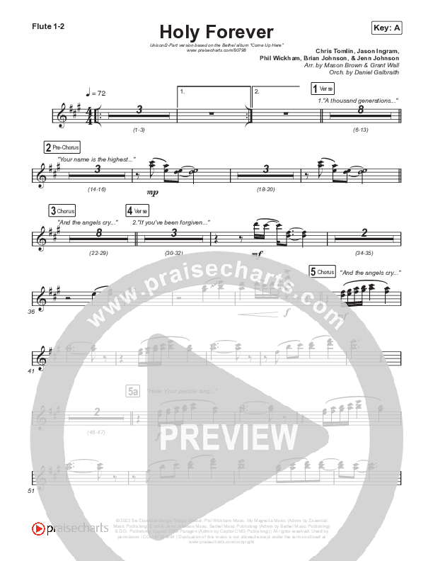 Download the Orchestration wind parts for Holy Forever (Unison/2-Part) by Bethel Music / Arr. Mason Brown, from the album Come Up Here. This song was arranged by Mason Brown / Daniel Galbraith / Grant Wall in the key of A.