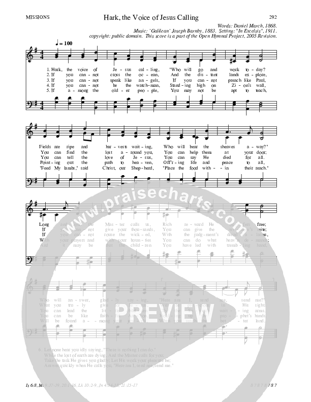 Hark The Voice Of Jesus Calling Hymn Sheet (Traditional Hymn)
