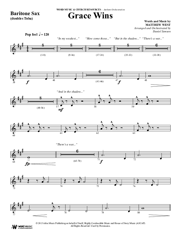 Grace Wins (Choral Anthem SATB) Bari Sax Sheet Music PDF (Word Music Choral / Arr. Daniel Semsen)