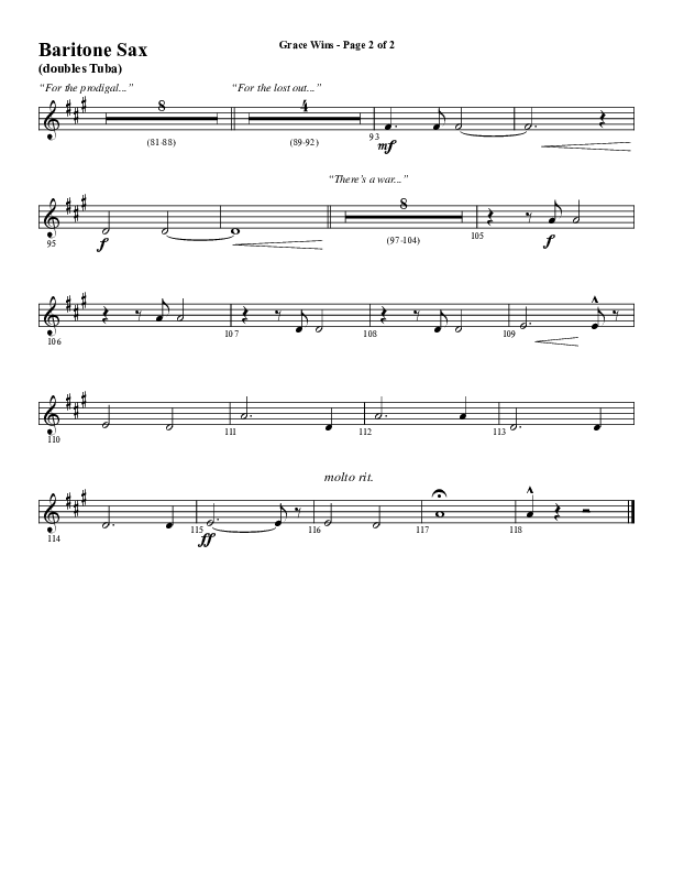 Download the Bari Sax sheet music for Grace Wins (Choral Anthem SATB) by Word Music Choral / Arr. Daniel Semsen, from the album Non-Seasonal Choral Anthems. This song was arranged by Daniel Semsen in the key of C.