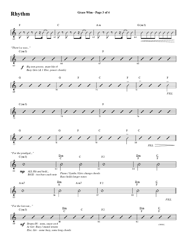 Download the Rhythm Chart for Grace Wins (Choral Anthem SATB) by Word Music Choral / Arr. Daniel Semsen, from the album Non-Seasonal Choral Anthems. This song was arranged by Daniel Semsen in the key of C.