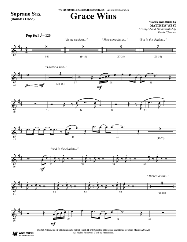 Download the Orchestration for Grace Wins (Choral Anthem SATB) by Word Music Choral / Arr. Daniel Semsen, from the album Non-Seasonal Choral Anthems. This song was arranged by Daniel Semsen in the key of C.