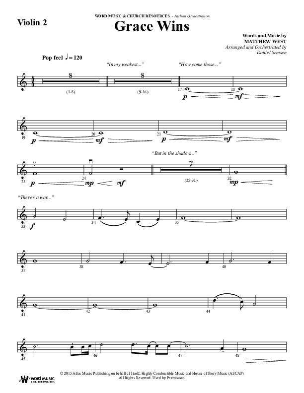 Download the Orchestration for Grace Wins (Choral Anthem SATB) by Word Music Choral / Arr. Daniel Semsen, from the album Non-Seasonal Choral Anthems. This song was arranged by Daniel Semsen in the key of C.