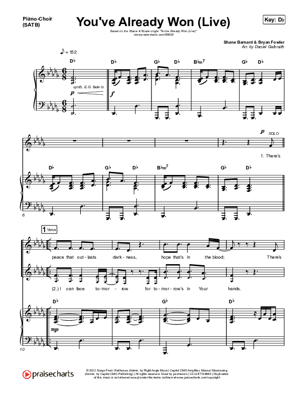 Download the sheet music for You've Already Won (Live) by Shane & Shane, from the album You've Already Won (Live). This song was arranged by Daniel Galbraith in the key of Bb, C, D, Db.