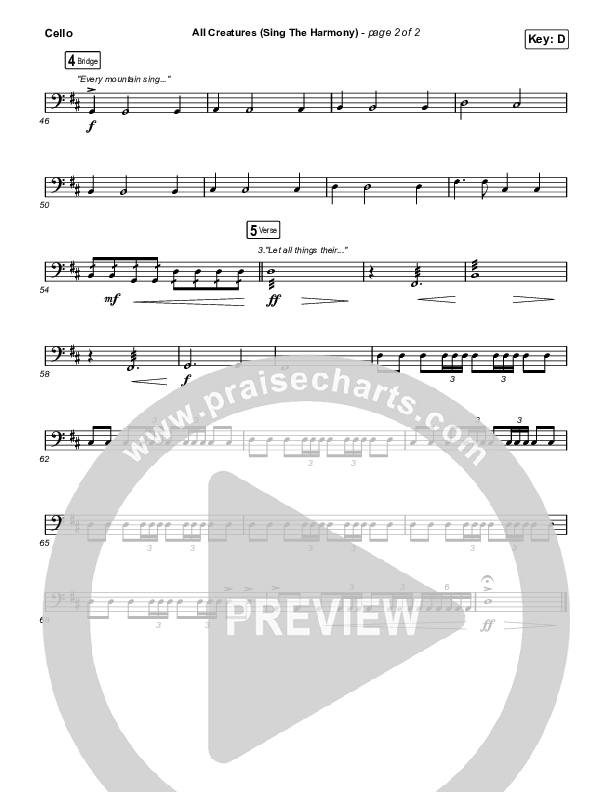 All Creatures (Sing In Harmony) (Live) Cello Sheet Music PDF (Shane & Shane)