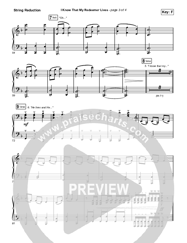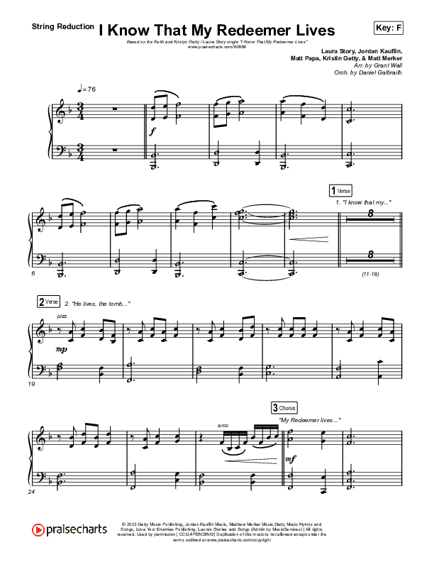 Download the String Reduction sheet music for I Know That My Redeemer Lives by Keith & Kristyn Getty / Laura Story, from the album I Know My Redeemer Lives. This song was arranged by Grant Wall / Daniel Galbraith in the key of F.