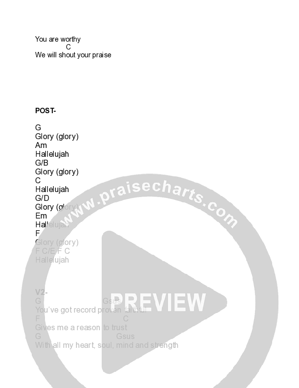 Download the PDF Chord Charts for Glory Hallelujah (Live) by Canyon Hills Worship, from the album All To Jesus.