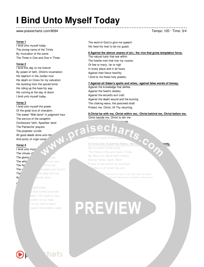 Download the PDF Chord Charts for I Bind Unto Myself Today by Traditional Hymn, from the album Open Hymnal.