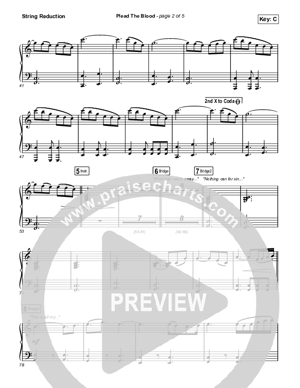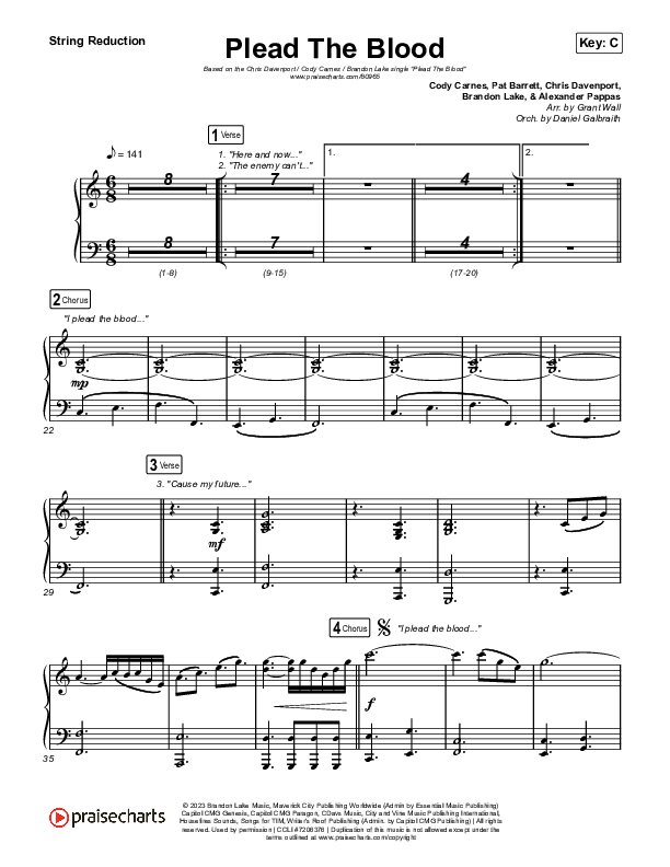 Download the String Reduction sheet music for Plead The Blood by Chris Davenport / Cody Carnes / Brandon Lake, from the album TIME. This song was arranged by Grant Wall / Daniel Galbraith in the key of Bb, C.
