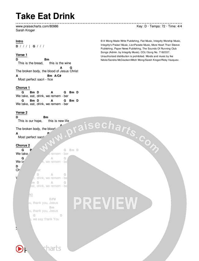 Take Eat Drink Chords PDF (Sarah Kroger)