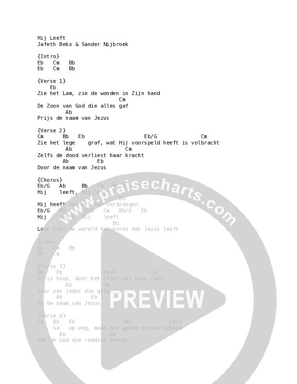 Download the PDF Chord Charts for Hij Leeft by InSalvation, from the album Hij Leeft.