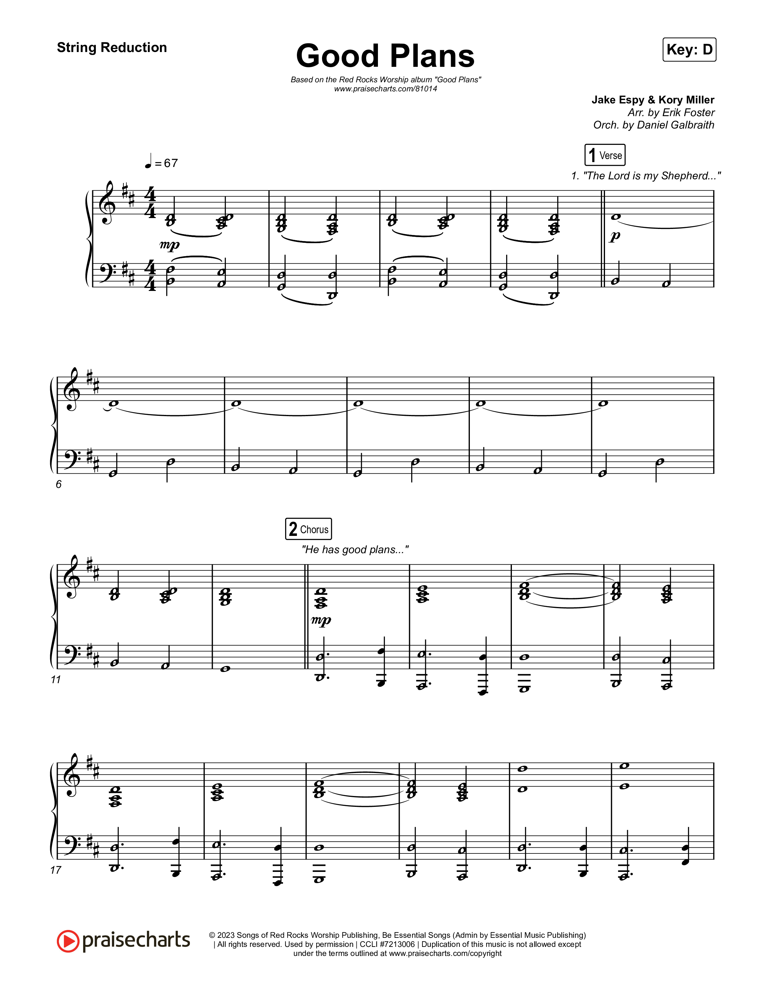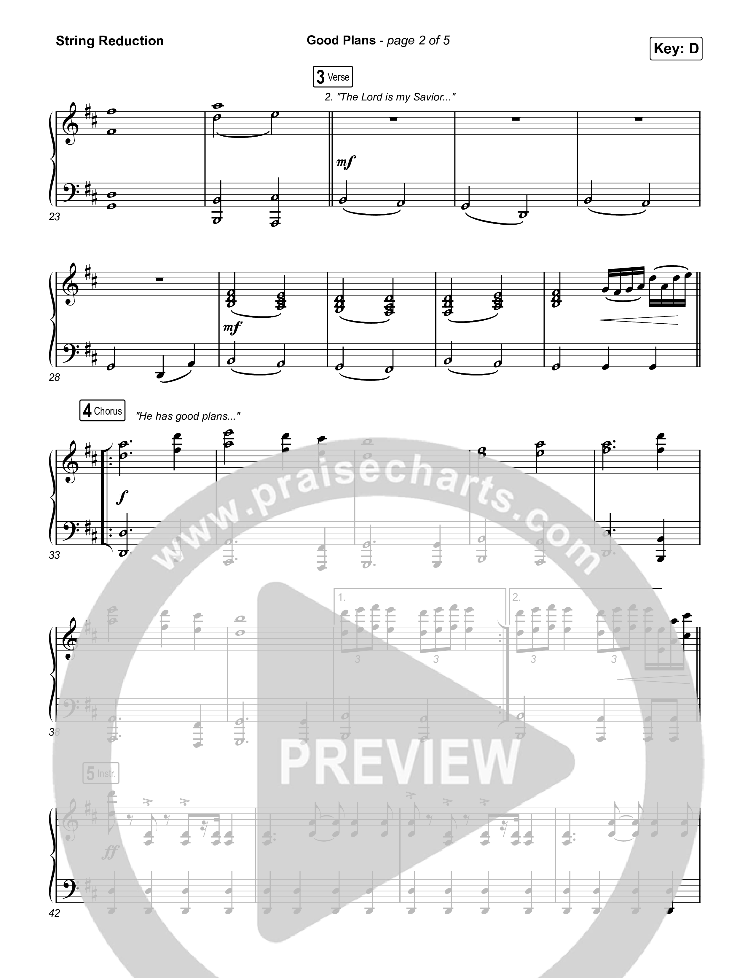 Download the String Reduction sheet music for Good Plans by Red Rocks Worship, from the album Good Plans. This song was arranged by Erik Foster / Daniel Galbraith in the key of C, D.