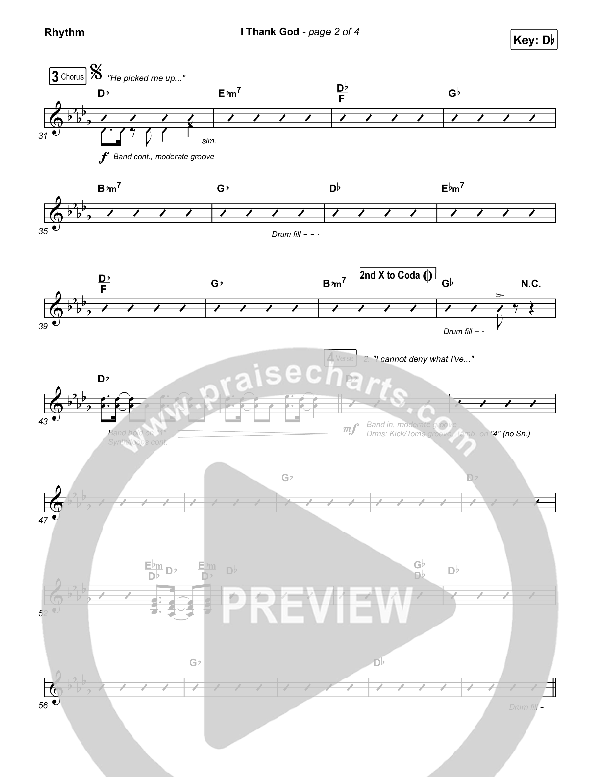 Download the PDF sheet music for I Thank God by Housefires / JWLKRS Worship, from the album How To Start A Housefire Part 2. This song was arranged by Grant Wall / Daniel Galbraith in the key of Bb, C, Db.