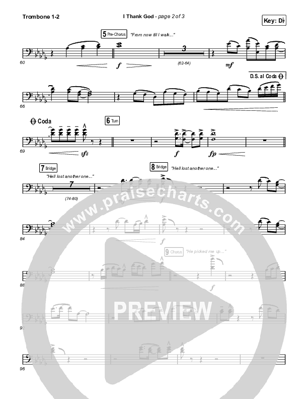I Thank God Trombone Sheet Music PDF (Housefires / JWLKRS Worship)