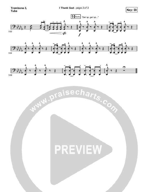 Download the Trombone 3/Tuba sheet music for I Thank God by Housefires / JWLKRS Worship, from the album How To Start A Housefire Part 2. This song was arranged by Grant Wall / Daniel Galbraith in the key of Bb, C, Db.
