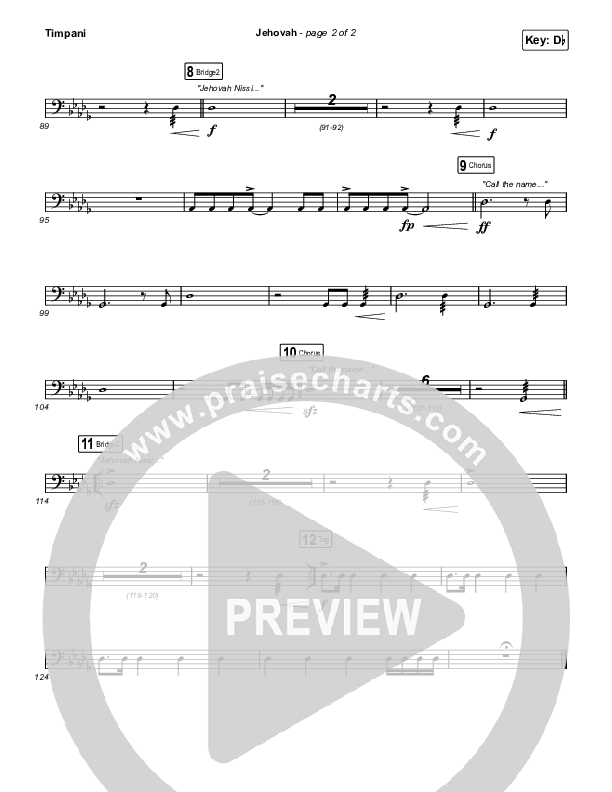 Download the Timpani sheet music for Jehovah by Elevation Worship / Chris Brown, from the album Can You Imagine?. This song was arranged by Daniel Galbraith in the key of C, Db.