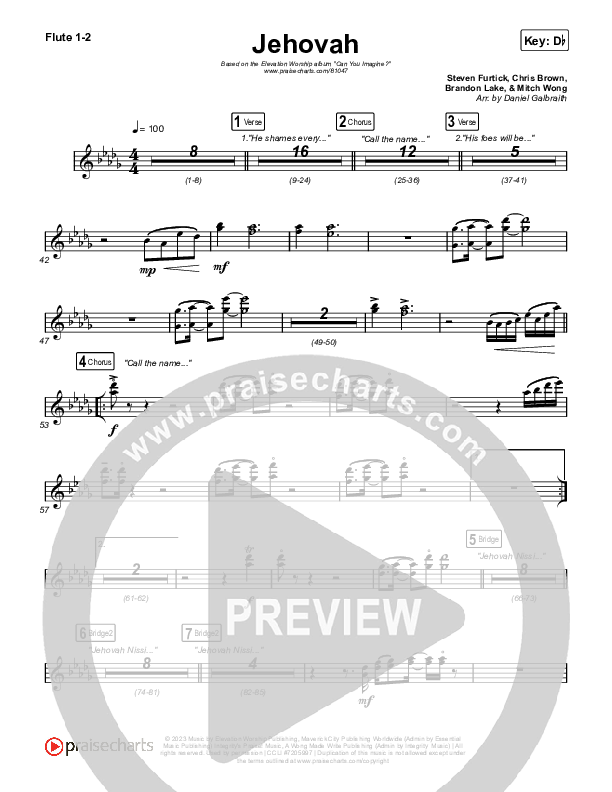 Download the Orchestration wind parts for Jehovah by Elevation Worship / Chris Brown, from the album Can You Imagine?. This song was arranged by Daniel Galbraith in the key of C, Db.