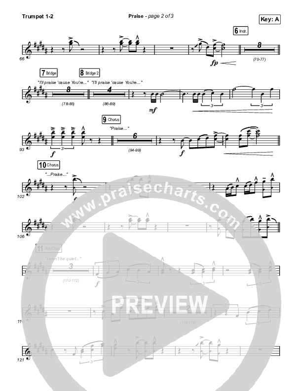 Download the trumpet sheet music for Praise by Elevation Worship / Chris Brown / Brandon Lake / Chandler Moore, from the album Can You Imagine?. This song was arranged by Daniel Galbraith in the key of A, Ab, Bb, F, G.