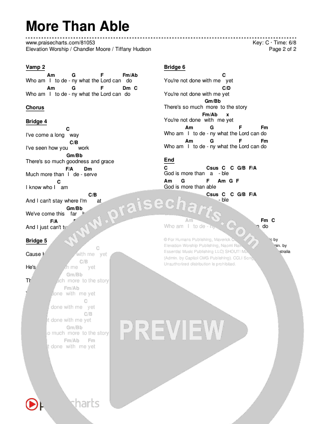 Download the PDF Chord Charts for More Than Able (Simplified) by Elevation Worship / Chandler Moore / Tiffany Hudson, from the album Simplified Worship.