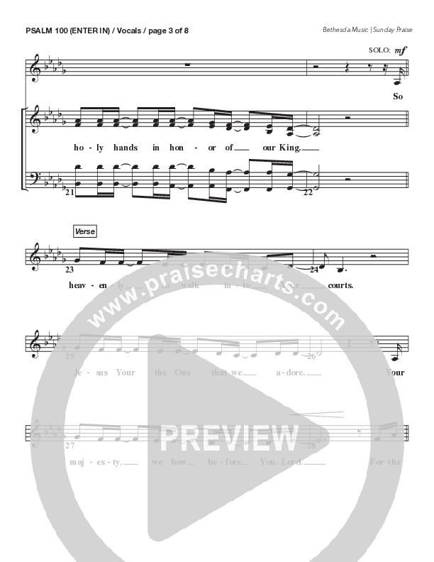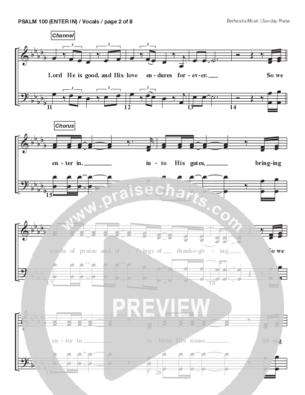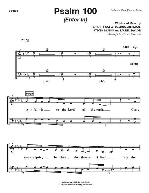 Download the Choir Sheet for Psalm 100 (Enter In) (Live) by Bethesda Music / Arr. Brent Brunson, from the album Sunday Praise | Everlasting God (Live). This song was arranged by Brent Brunson in the key of Db.
