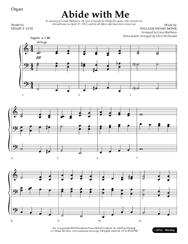 Download the Orchestration for Abide With Me (Choral Anthem SATB) by Lifeway Choral / Arr. Gary Matthews / Arr. Chris McDonald, from the album Non-Seasonal Choral Anthems. This song was arranged by Gary Matthews / Chris McDonald in the key of C.
