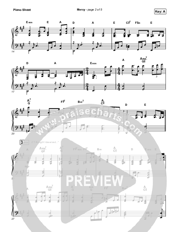Download the piano sheet for Mercy by Housefires / Ahjah Walls, from the album How To Start A Housefire Part 2. This song was arranged by Daniel Galbraith in the key of A, Bb.