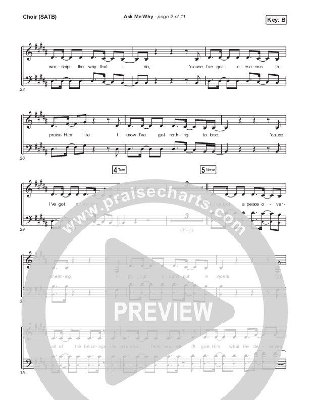 Download the Choir Sheet for Ask Me Why by Michael Bethany, from the album Overflow. This song was arranged by Grant Wall in the key of B.