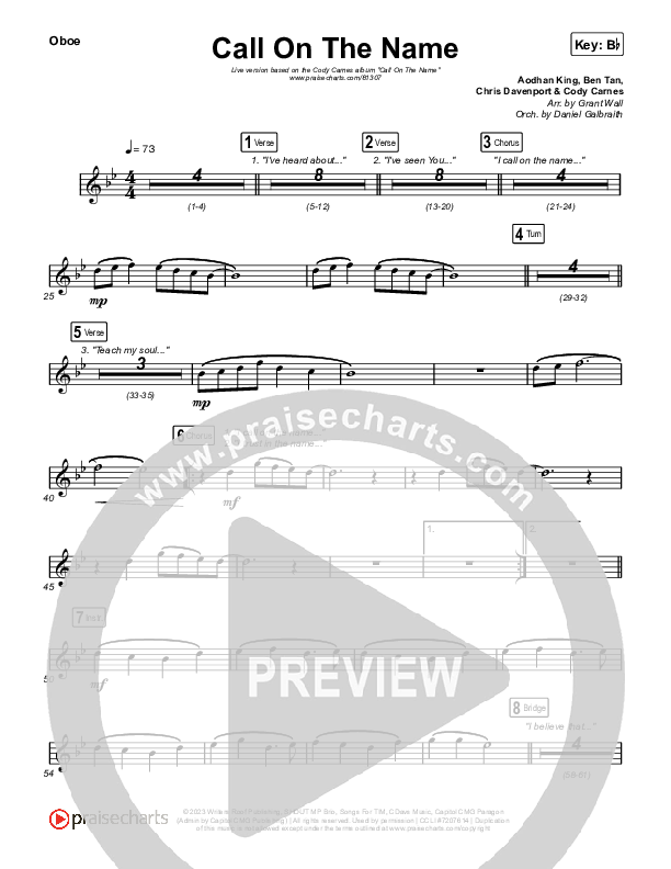 Call On The Name (Live) Oboe Sheet Music PDF (Cody Carnes)