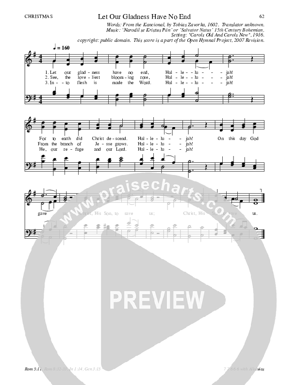 Download the Hymn Sheet for Let Our Gladness Have No End by Traditional Hymn, from the album Open Hymnal.