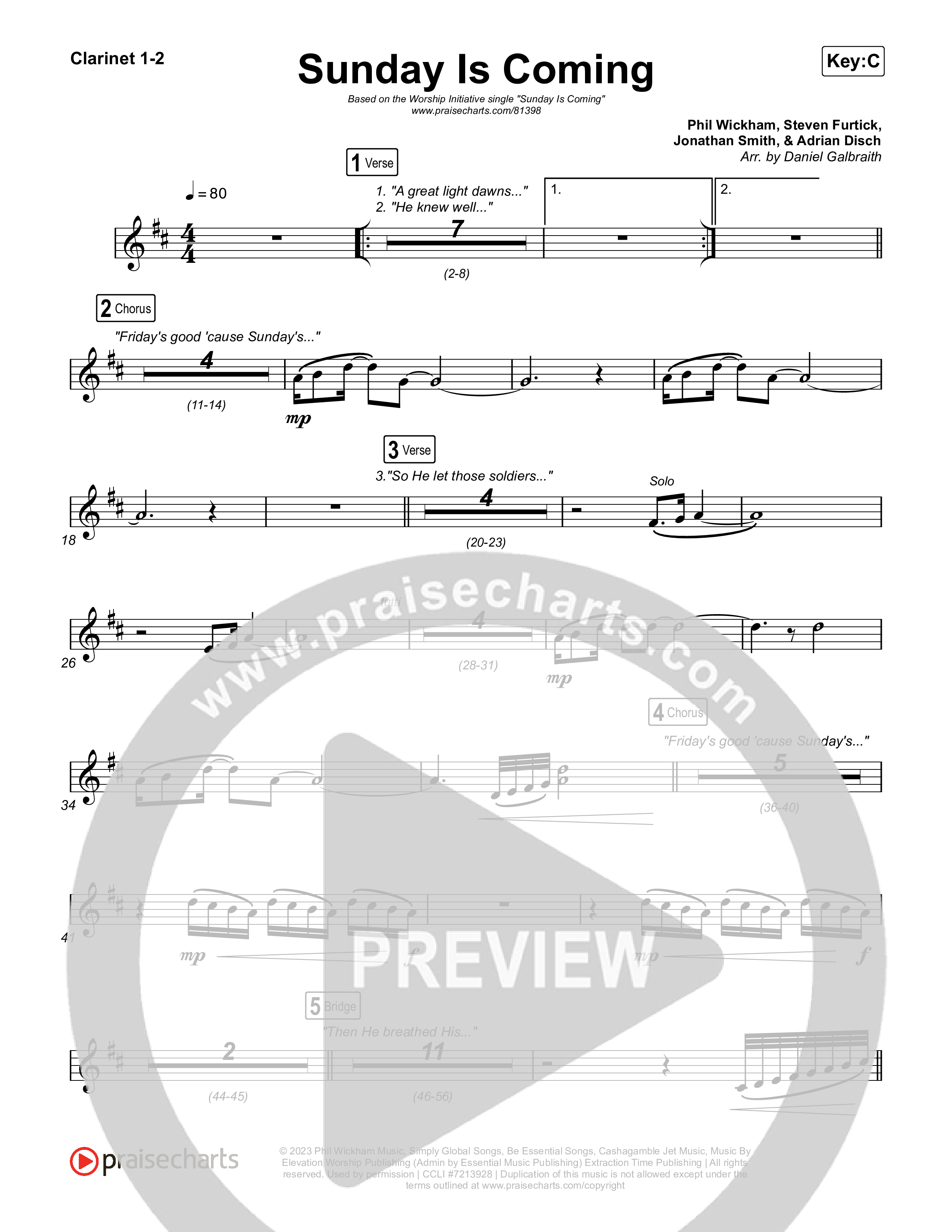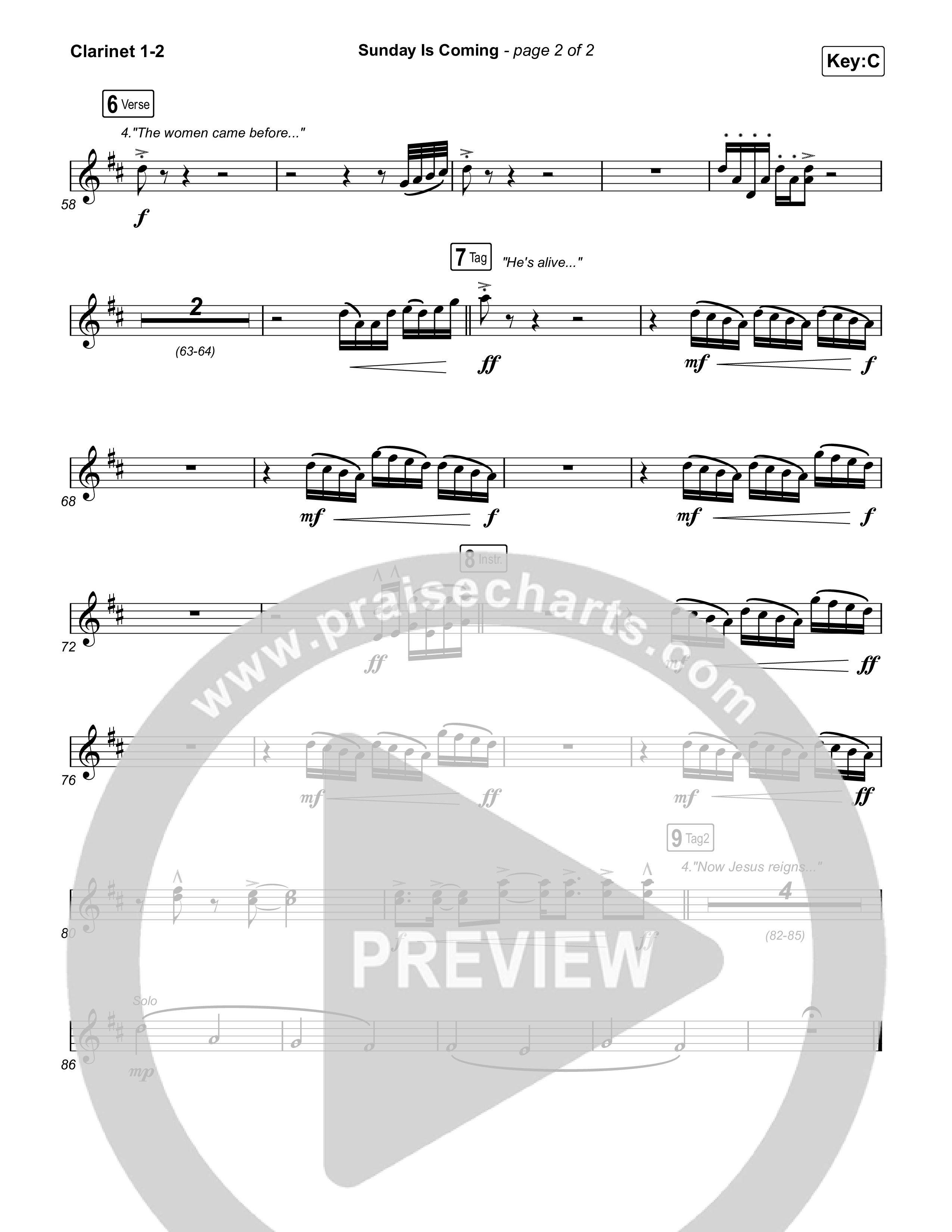 Download the Clarinet sheet music for Sunday Is Coming by The Worship Initiative / John Marc Kohl, from the album Sunday Is Coming. This song was arranged by Daniel Galbraith in the key of Bb, C.