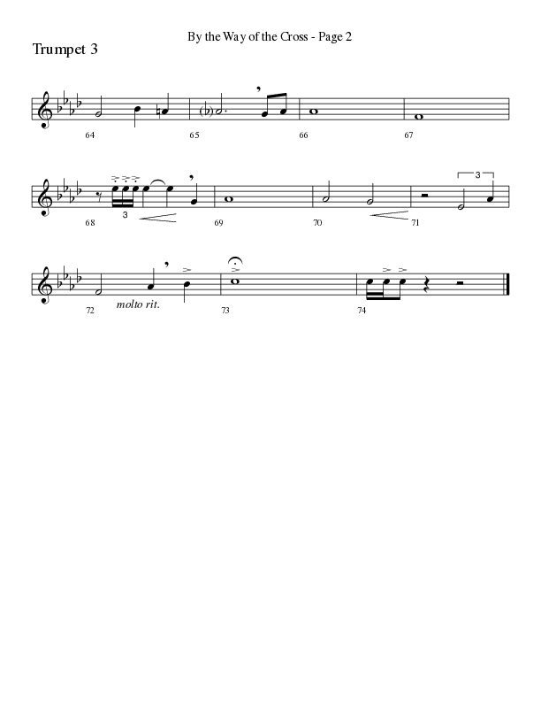 Download the Trumpet 3 sheet music for By The Way Of The Cross (Choral Anthem SATB) by Word Music Choral / Arr. Mike Speck / Arr. Lari Goss / Arr. Danny Zaloudik, from the album Easter Choral Anthems. This song was arranged by Mike Speck / Lari Goss / Danny Zaloudik in the key of F.