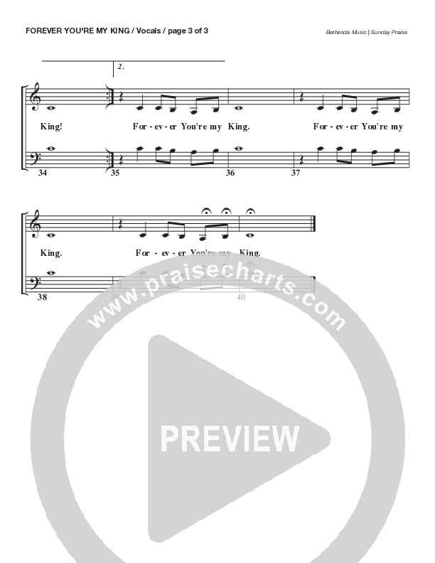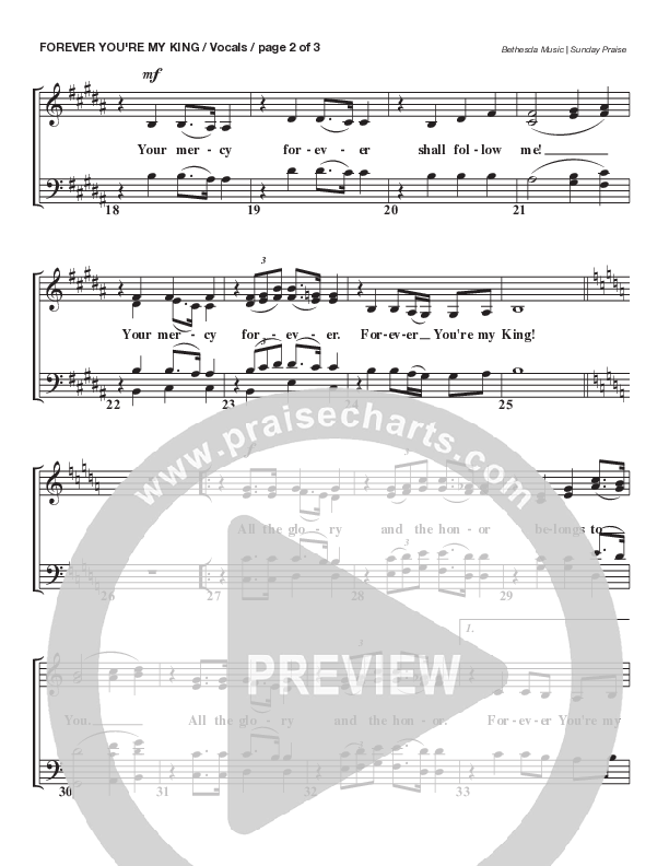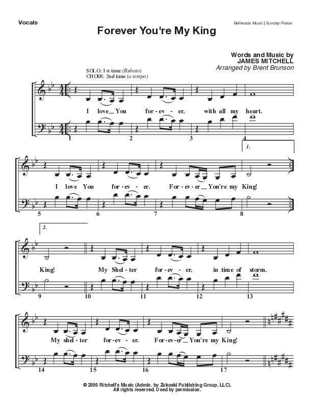 Download the Choir Sheet for Forever You're My King (Live) by Bethesda Music / Arr. Brent Brunson, from the album Sunday Praise | Everlasting God (Live). This song was arranged by Brent Brunson in the key of Bb.
