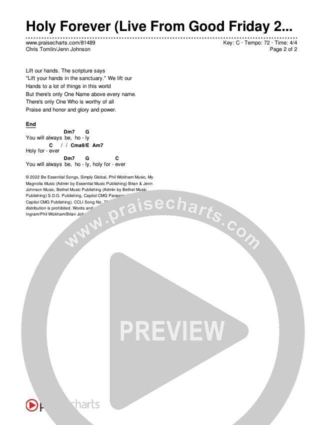 Holy Forever (Live From Good Friday) Chords PDF (Chris Tomlin / Jenn Johnson)
