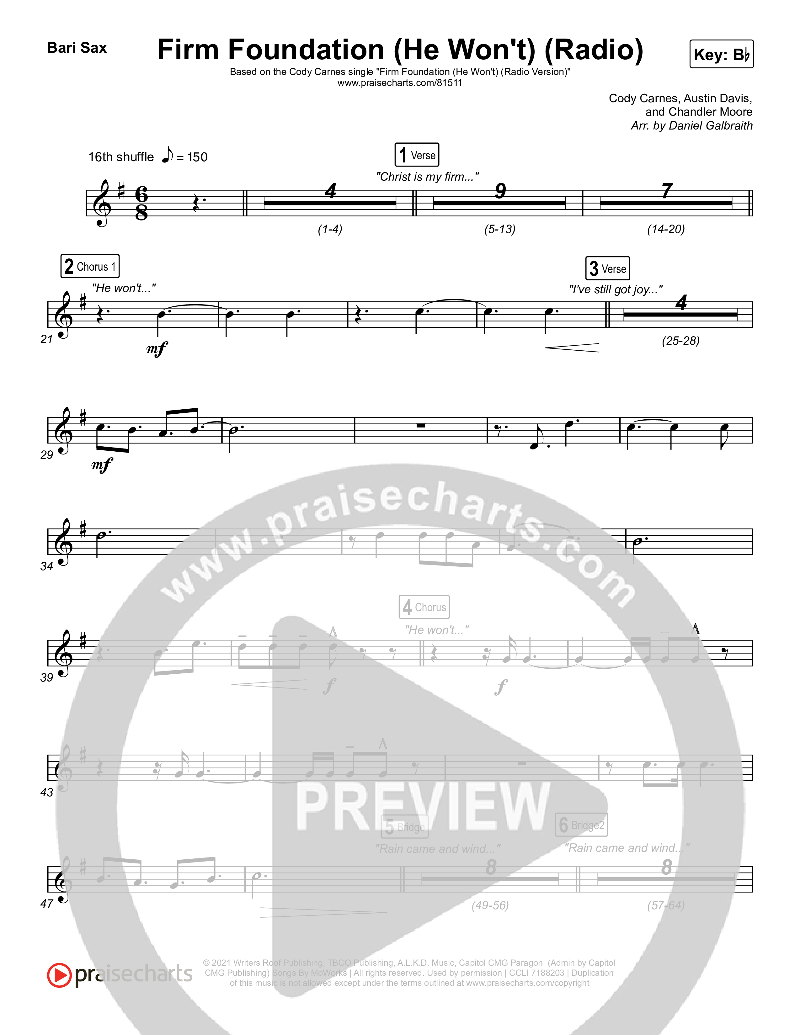 Firm Foundation (He Won't) (Radio) Bari Sax Sheet Music PDF (Cody Carnes)
