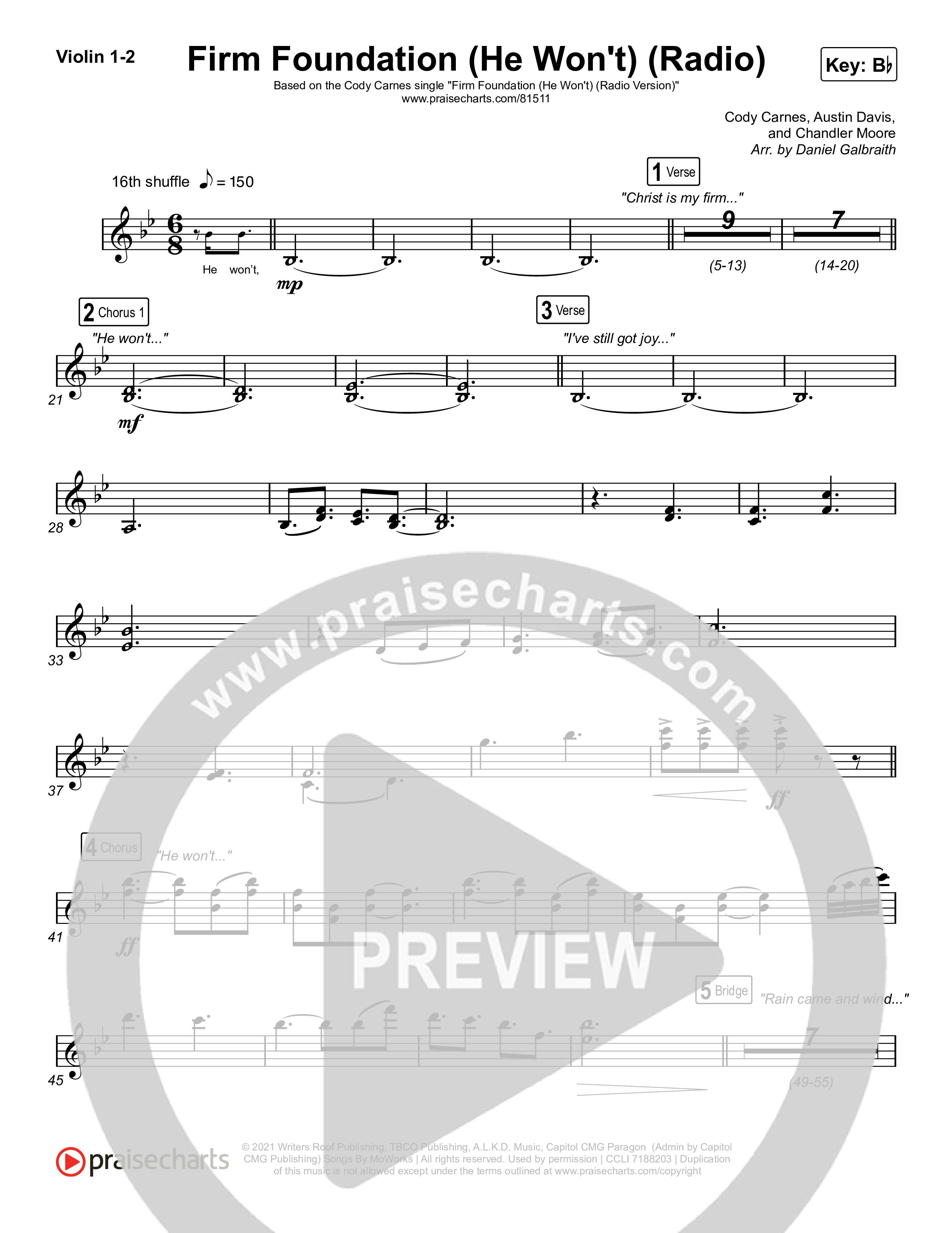 Download the Orchestration string parts for Firm Foundation (He Won't) (Radio) by Cody Carnes, from the album Firm Foundation (He Won't) (Radio). This song was arranged by Daniel Galbraith in the key of A, Bb, G.