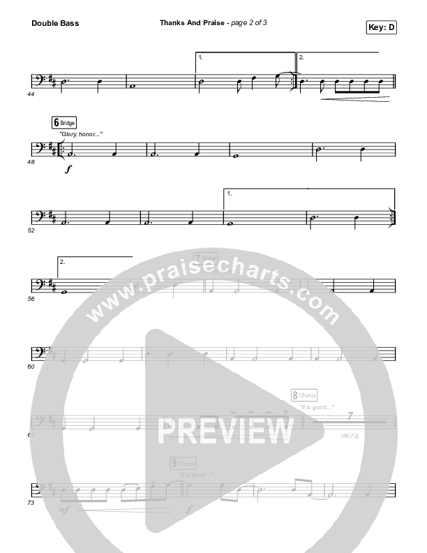 Download the String Bass sheet music for Thanks And Praise (Unison/2-Part) by Songs From The Soil / Lucy Grimble / Philippa Hanna / Rich DiCas / Arr. Phil Nitz, from the album Thanks And Praise. This song was arranged by Phil Nitz / Daniel Galbraith / Grant Wall in the key of D.