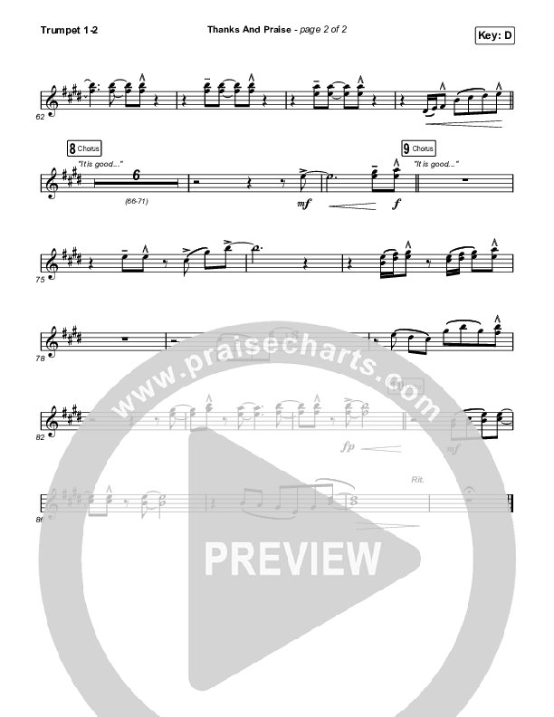 Download the trumpet sheet music for Thanks And Praise (Unison/2-Part) by Songs From The Soil / Lucy Grimble / Philippa Hanna / Rich DiCas / Arr. Phil Nitz, from the album Thanks And Praise. This song was arranged by Phil Nitz / Daniel Galbraith / Grant Wall in the key of D.