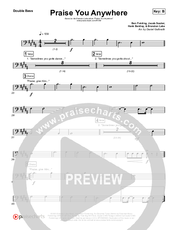 Praise You Anywhere String Bass Sheet Music PDF (Brandon Lake)