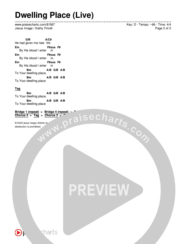 Download the PDF Chord Charts for Dwelling Place (Live) by Jesus Image / Kathy Frizell, from the album Dwelling Place.