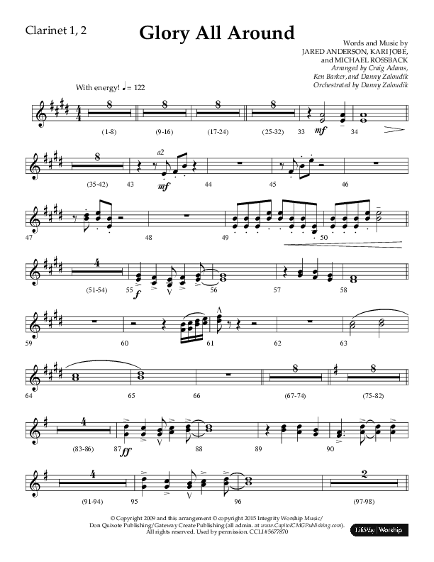 Glory All Around (Choral Anthem SATB) Clarinet Sheet Music PDF (Lifeway Choral / Arr. Danny Zaloudik / Arr. Ken Barker / Arr. Craig Adams)