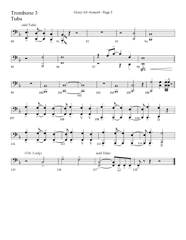 Glory All Around (Choral Anthem SATB) Trombone/Tuba Sheet Music PDF (Lifeway Choral / Arr. Danny Zaloudik / Arr. Ken Barker / Arr. Craig Adams)