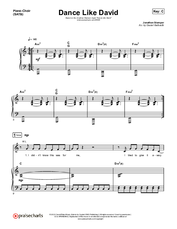 Download the PDF sheet music for Dance Like David by Black Voices Movement / Circuit Rider Music / Jonathan Stamper, from the album Dance Like David. This song was arranged by Daniel Galbraith in the key of Bb, C.