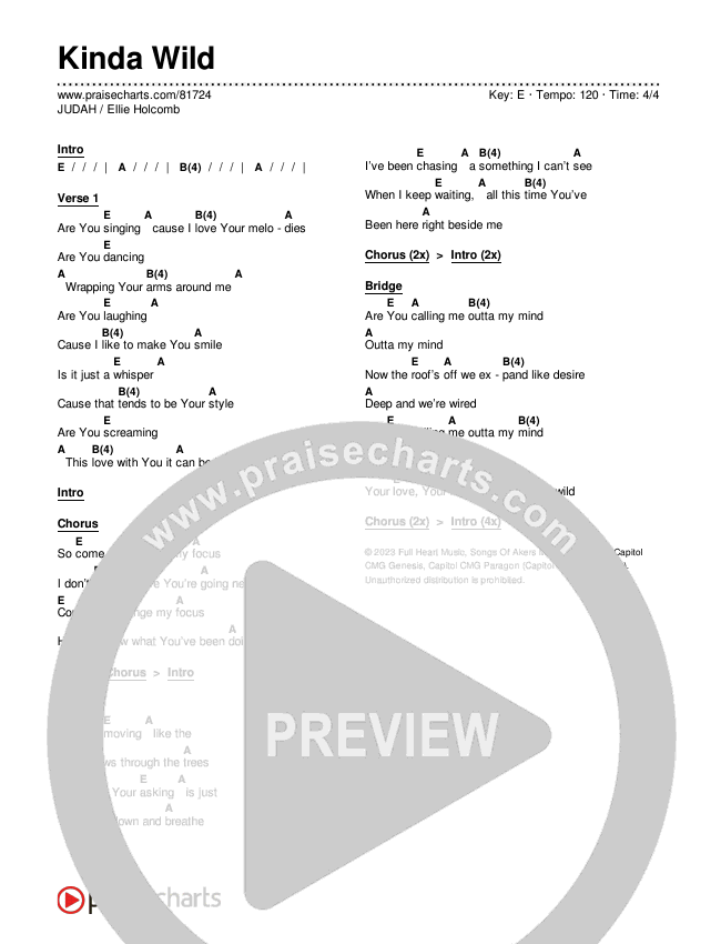 Download the PDF Chord Charts for Kinda Wild by JUDAH / Ellie Holcomb, from the album Kinda Wild.