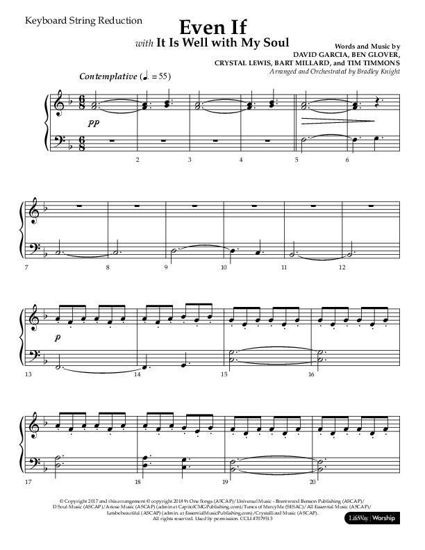 Download the String Reduction sheet music for Even If (Choral Anthem SATB) by Lifeway Choral / Arr. Bradley Knight, from the album Non-Seasonal Choral Anthems. This song was arranged by Bradley Knight in the key of F.