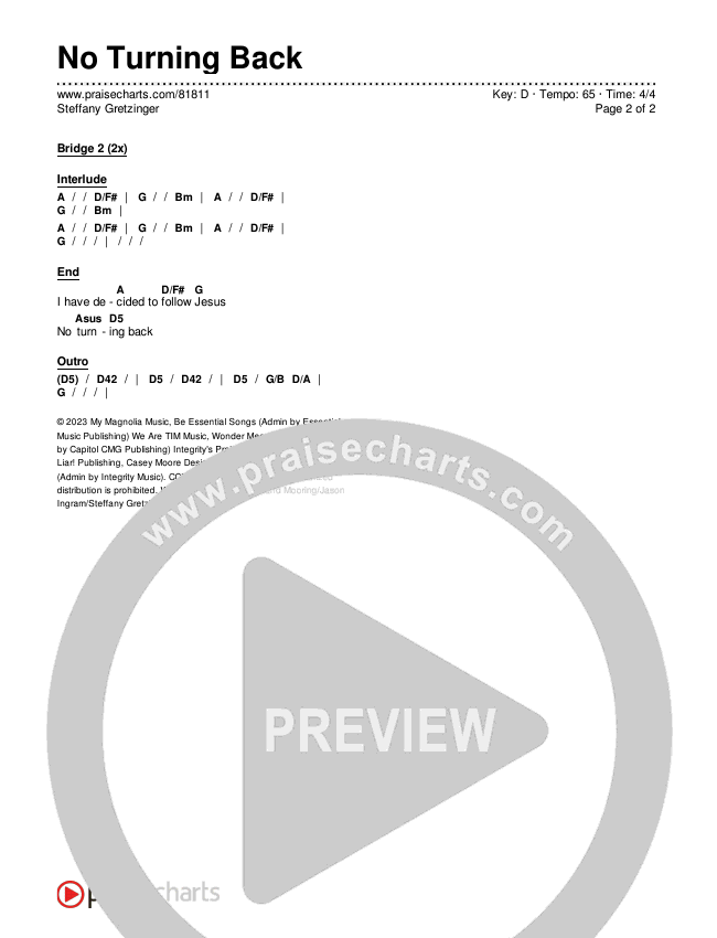 No Turning Back Chords PDF (Steffany Gretzinger / Leeland)